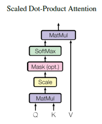 - 이때 모든 query와 key에 대한 dot-product를 계산하고 각각을 root(d_k)로 나누어준다. root(d_k)로 scaling을 해주기 때문에 Scaled Dot-Product Attention이라고 한다. Scaling 이후 softmax를 적용해 value들에 대한 weights를 얻어낸다.