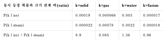 동시 등장 행렬로부터 특정 단어 i의 전체 등장 횟수를 카운트하고, i가 등장했을 때 어떤 단어 k가 등장한 횟수를 카운트한 조건부 확률.